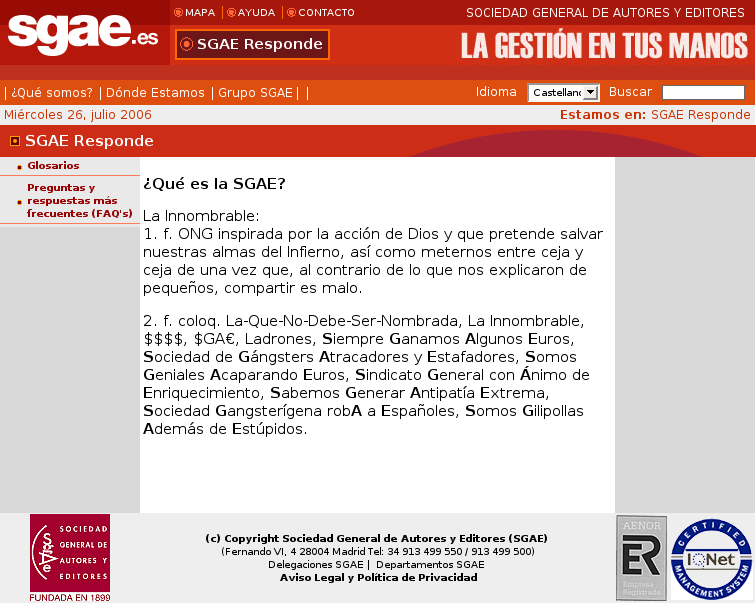 Curioso, me comentaba hace un tiempo un amigo mío que trabaja en un bar de copas de Ávila, que si pagas a la SGAE puedes hacer lo que quieras en tu local, refiriendose a la música claro está.